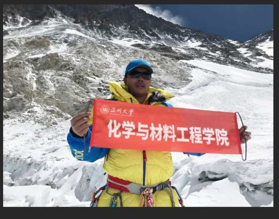 而毕业于星空平台化学专业的潘正胜,从2013年登上海拔5396米的云南哈巴雪山开始,他用四年的时间先后登上海拔5895米的非洲乞力马扎罗雪山、海拔5180米的四川鹰鸽嘴峰;海拔7509米的新疆慕士塔格山和海拔8163米的世界第八高峰马纳斯鲁峰。攀登世界最高峰珠穆朗玛峰既是他的梦想,也是他挑战自己的新目标。此次潘正胜攻克的海拔高度是8400米,由于遭遇极端恶劣天气,于20日放弃了登顶计划。
