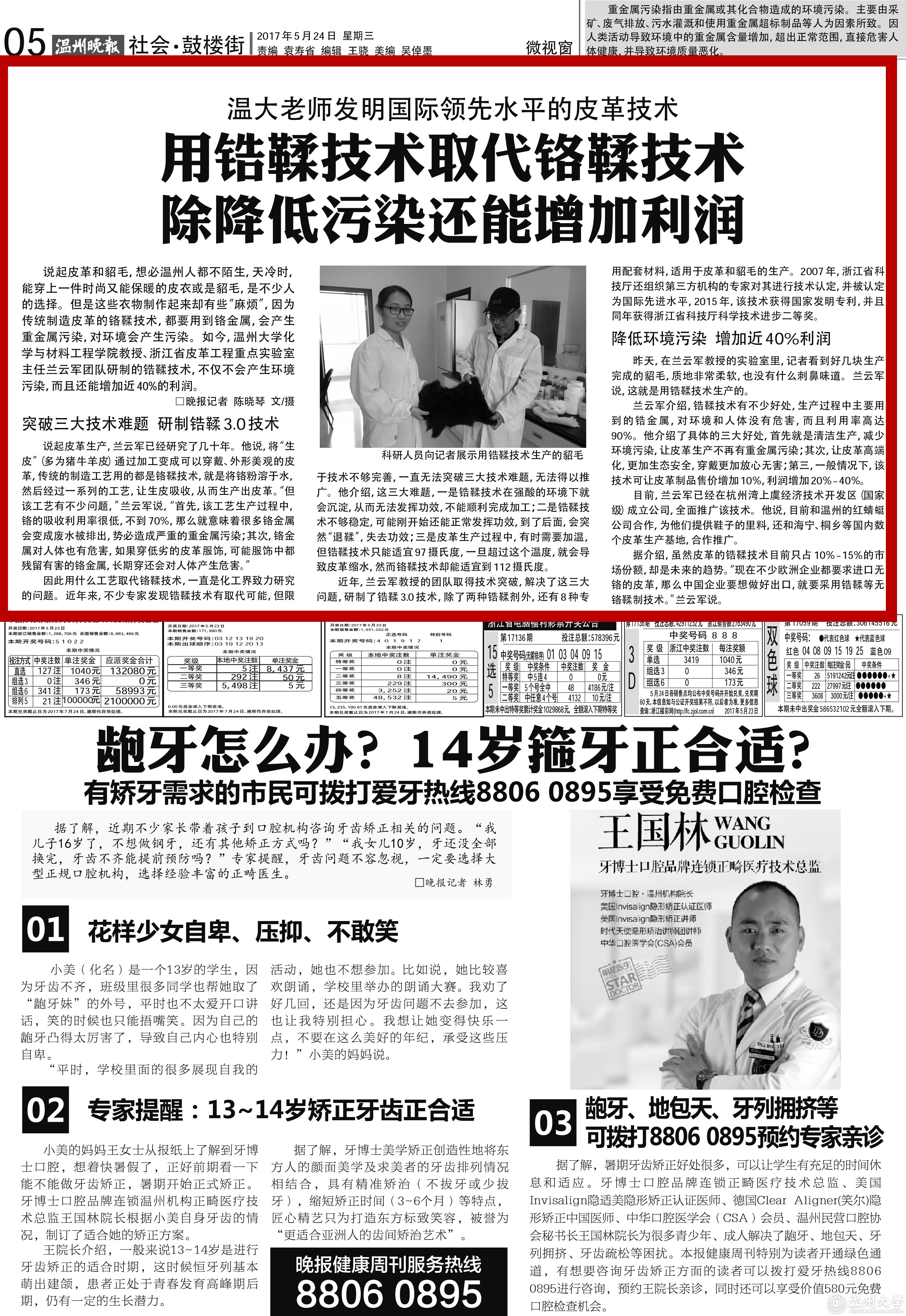 目前,兰云军已经在杭州湾上虞经济技术开发区(国家级)成立公司,全面推广该技术。他说,目前和温州的红蜻蜓公司合作,为他们提供鞋子的里料,还和海宁、桐乡等国内数个皮革生产基地,合作推广。
