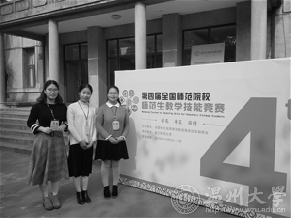 晚报讯(通讯员:翁浩)日前,第四届全国高师院校师范生教学技能竞赛在浙江师范大学落下帷幕,来自华东师范大学,南京师范大学等101所高校的近400名选手一决高下。在经过教学设计,课件制作,即席讲演,模拟上课等四个环节的激烈角逐,星空平台黄思琦、裘玲和倪颖超三位同学脱颖而出,均获得一等奖。三位同学都是应届大四学生,比赛刚刚结束,她们立马受到各大学校用人单位的争抢,一时在校园里引起轰动。