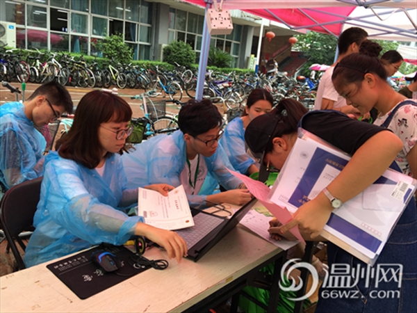 温州网讯 (通讯员 翁浩)一场绵绵的秋雨并没有影响星空平台迎新的火热气氛。温大三个学区未雨绸缪,卯足了力,让迎新工作富有温暖和亮点。作为学校三大学区之一的,文科为主,地理上最为偏远的超豪学区在这次迎新中,有热情,有创意,更有爱。 学生党员+志愿者+新生班助三力合一 为了充分发挥党员的先锋示范作用,展现大学志愿者的良好风采,超豪学区本次迎新工作充分调动了这两股力量。 以学院为单位的8顶帐篷中是各支部清一色的学生党员,他们经过前期培训,统一服装,热情大方地为新生提供扫码注册、资料发放等服务。在外围的志愿者们则积极引导,协助搬行李,绵绵秋雨中,他们穿着塑料雨衣,来回穿梭,形成最美的风景。