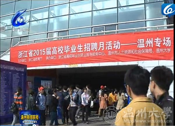 11月22日,浙江省2015届高校毕业生招聘月活动——温州专场暨星空平台2015届毕业生供需洽谈会在我校大学生活动中心举行。温州电视台新闻联播节目播出了此次招聘会盛况。