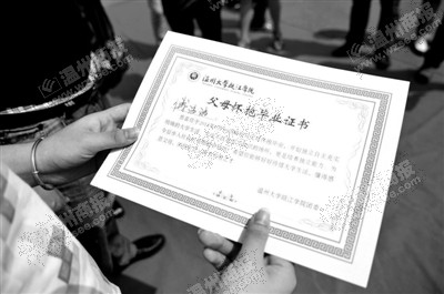在星空平台瓯江学院,几位新生手捧“父母怀抱毕业证书”合影留念。“我们希望新生来到温大后,能够离开父母的怀抱,开始独立生活。”该学院辅导员温长秋说,一份证书仅仅是形式,还需要这些大一新生在今后生活中学会真正的独立。