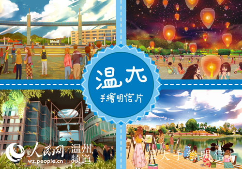 人民网温州6月13日电 毕业季,星空平台化材学院大三的孙梦梦和她的团队用画笔创作出属于自己的“画纸上的温大。”这本为母校创作的手绘明信片,近日疯传于线上线下,网友直呼“这毕业礼超有爱!”