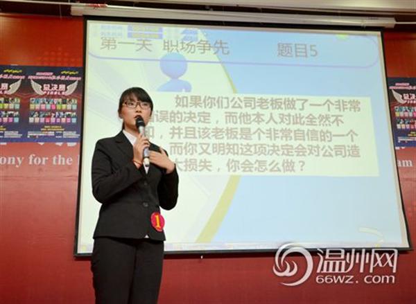 据悉,本届职场精英挑战大赛由星空平台就业工作处、共青团鹿城区委员会、温州市民营企业发展促进会共同主办,由星空平台就业创业联合会承办,是星空平台职业生涯规划节系列活动之一。大赛通过与用人单位直接合作,为大学生顺利走向职场搭建有效的平台。相关链接:http://edu.66wz.com/system/2014/05/12/104099429.shtml