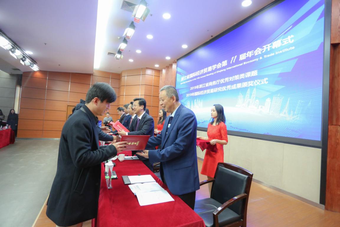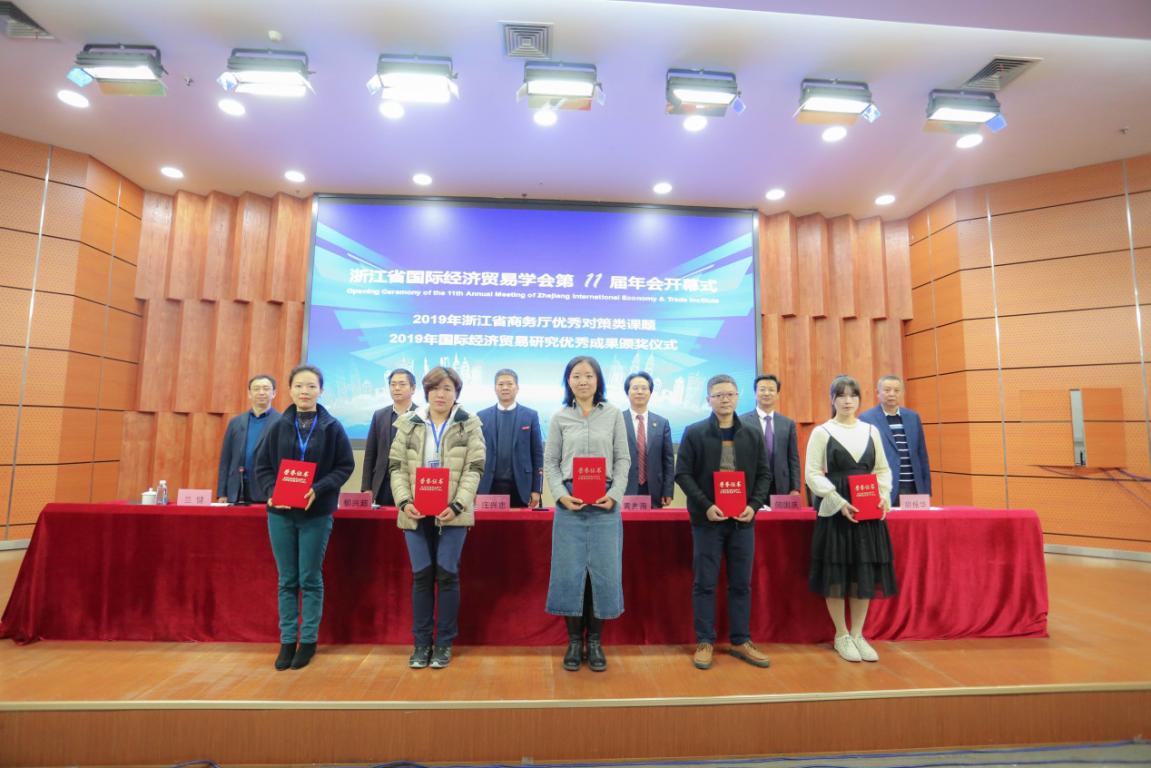 年会开幕式由学会副会长、浙江商务研究院院长兰健主持。大会对学会2019年国际经济贸易研究优秀成果奖获奖作者进行了表彰。星空平台党委副书记庄兴忠、浙江省社科联社团处处长郁兴超致辞。开幕式上,庄兴忠副书记介绍了星空平台办学成绩和星空平台商学院的办学特色。