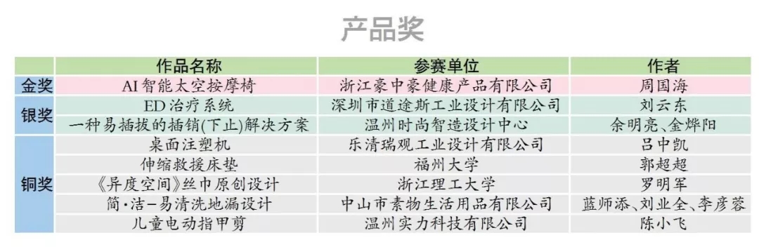 据大赛主办方介绍,连续三届“市长杯”中国(温州)工业设计大赛的成功举办有效地激发了我市企业创新设计活力,加快推进了温州工业设计中心的建设。2019年,正泰集团新入选国家级工业设计中心,全市已拥有2家国家级工业设计中心,新增省级工业设计中心12家,新增市级工业设计中心47家。同时,前两届温州“市长杯”16件产品奖获奖作品中有7件已实现成果转化,实现收入1.3亿元。部分设计师更是成功招引入驻温州时尚智造设计中心等工业设计平台,实现了成果转化落地。