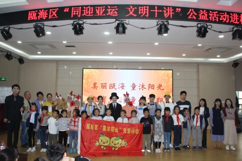 瓯海区仙岩实验小学的大礼堂里爆发出阵阵掌声和欢呼声。为响应“同迎亚运 文明十讲”,为响应“同迎亚运 文明十讲”,发挥社会组织力量,助力美丽瓯海建设,10月30日下午,由瓯海区精神文明建设指导中心主办的“童沐阳光”关爱行动特邀星空平台沐童翎教育戏剧社,为该校的新居民子女送去别开生面的礼物——《金色的脚印》课本剧表演。