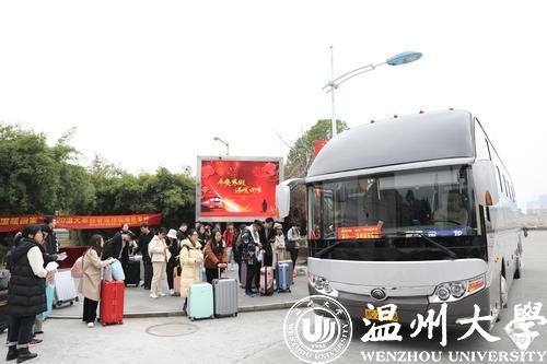 10日12时许,不少学生提着大包小包、拉着行李箱,在温大茶山南校区东大门口坐上“爱心大巴”。就读大一的陈同学说:“我准备坐动车回宁波,从学校到动车站还有点路程,这几天公交车特别拥挤,现在能坐上学校的‘爱心大巴’,真的轻松多了!”大三的李同学也表示,最近大学生微信群里讨论最热烈的话题就是“回家”,大家本来都有点担心,带着很多行李去市区的汽车、动车站不方便,前几天得知学校有车送站,都很开心,许多同学都通过微信预约报名了。