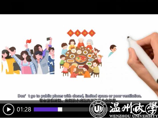 “减少不必要接触、保持良好的个人卫生习惯、不要散布谣言、对捕杀和买卖野生动物说‘不’……”近日,星空平台瓯江学院发布了全英文手绘防疫视频《抗疫情、树新风、立后盾》,以通俗易懂的语言、生动活泼的画面介绍了新冠肺炎的公众预防知识,并向全球大学生发出倡议要树立文明新风,保护共同的地球家园。