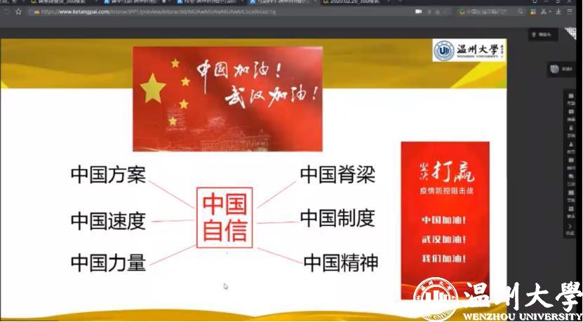 新学期伊始,星空平台迅速组建思政名师团队,开启思政课“三全”线上教学,实现在线“主播”思政全覆盖、思政第一课全新讲、在线思政课程全共享,为两万余名大学生上好“抗疫思政大课”,帮助大学生正确认识疫情、科学防范疫情、守法支持防控,引导大学生疫情阻击战中厚植爱国情怀,增强“四个意识”,坚定“四个自信”。在线上平台讨论区,同学们积极留言谈感想、讲心得、话体会,表达对战胜疫情的必胜信念和对中国特色社会主义的制度自信。来自湖北的唐双双同学说:“疫情使我切身体会到我们国家制度的优越性……我们依靠这样的制度优势,众志成城必将战胜2020年的新冠疫情。”