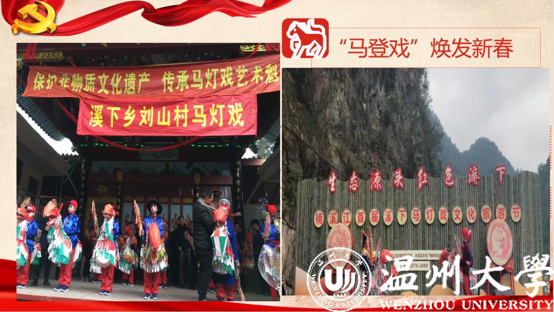 来自本科生党支部的陈嘉滢向大家展示了永嘉一个偏远山村——溪下乡刘山村传承非物质文化遗产——马灯戏的故事。她以该村支书崔秀明的音频原话结尾,使全体师生感受到了基层干部的艰辛与不易。