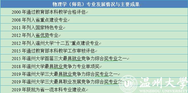 学科背景:依托于物理学一级学科硕士点,设有凝聚态物理、理论物理、物理学课程教学论和学科教学(物理)等二级学科硕士点,其中凝聚态物理为浙江省重点学科A类。