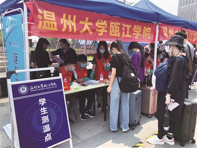 温大瓯江学子返校前先测体温。