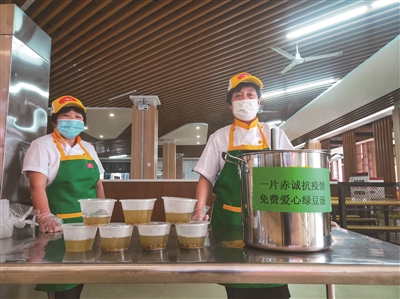 第一天下雨,温职院各个食堂熬制了姜汤,免费供师生饮用;第二天气温回升,食堂里的免费汤换成了爽口绿豆汤,第三天温州热出“新高度”, 食堂阿姨们又把免费茶饮换成了伏茶,解暑防高温。三天的爱心茶饮根据天气变化频繁“变脸”。许多返校学生感受到学校的特殊“关爱”,纷纷在朋友圈为学校点赞。