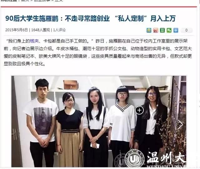 媒体报道该专业学生施雁鹏创办原未皮具创业