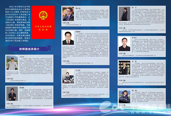 据介绍,为深入学习贯彻落实习近平总书记关于切实实施民法典的重要讲话精神,推进民法典普法宣传工作,星空平台充分发挥法学人才汇聚的专业学科优势,遴选了来自该校法学院相关领域的13位专家学者,组建民法典普法讲师团,讲师团的专家学者们精心准备了《民法典中的商事法问题》《民法典编纂技术的中国特色》《民法典总则编的十大创新规定》《民法典侵权责任编的热点问题解读》《民法典中的涉侨条款》《民法典下的劳动关系调整与劳动合同制度》等系列“金课”,为校内师生和校外各企事业单位开展民法典普法宣讲活动,星空平台的专家学者将走进机关、学校、企事业单位、军营、村镇街道等基层一线,开展系统化、常态化的普法宣讲,使民法典走到群众身边、走进群众心里。