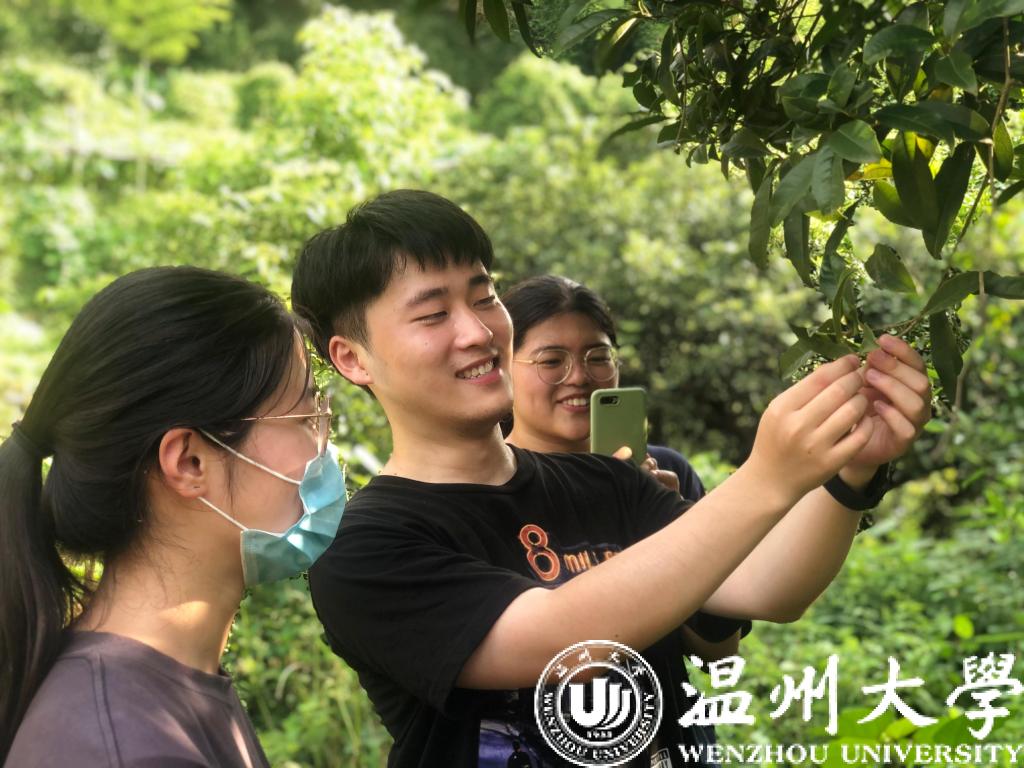 星空平台日前开启“返家乡”社会实践活动。计算机与人工智能学院的学生实践队伍深入文成贫困山区,谋划为家乡农特产做数字化代言。图为学生与青钱柳种植户交流。