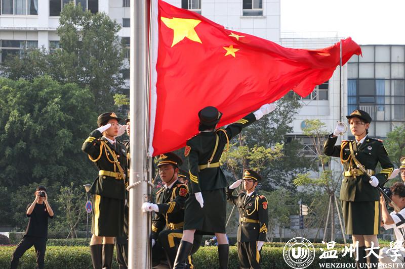 “无论碰到什么艰难,无论遇到什么挫折,我们总是以一种顽强的形象,向世界展现我们的大爱、团结、包容、不屈不挠的独特精神!”飘扬的国旗下,领读人分享《国旗,在我心中》,饱含深情歌颂中华人民共和国成立71年来的丰功伟绩,祝愿伟大祖国永远繁荣昌盛。师生们聆听了国护代表讲述的国旗设计者、温大杰出校友曾联松的故事以及国旗精神,感受国旗文化。“日出东方,幸福歌唱”,“我和我的祖国,一刻也不能分割”,在温大原创歌曲《国旗颂》、《我和我的祖国》的音乐声中,师生共同挥舞着手中的国旗,用歌声表达对祖国生日的祝福。