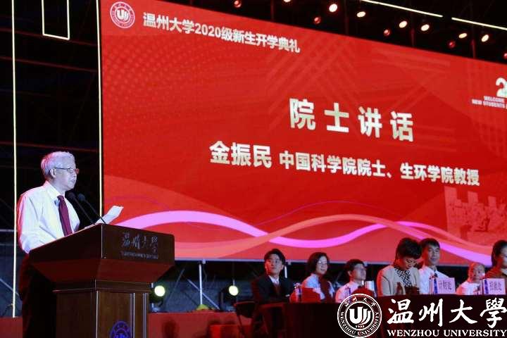 开学典礼上,中国科学院院士、著名地质学家金振民与新生们分享了自己的求学与工作经历,为同学们的温大研学之路提出宝贵建议,并勉励同学们不负时光、奋发向上、求真学问、练真本领。