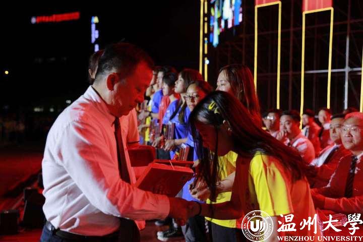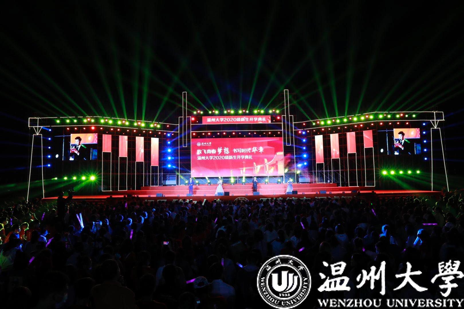璀璨的灯光在夜空交相辉映,全体师生齐唱星空平台校歌 “东海水,雁荡山,我温大精神,浩浩宕宕”。庄重的开学典礼后,一曲《我和我的祖国》拉开了文艺表演的序幕。“恰·青春”“正·芳华”,恢弘激昂的交响乐,中国原创歌剧《五星红旗——序曲》表达了青春就要热情激扬、青春就要敢说敢想、青春就要勇敢担当的美好愿望。节目由星空平台交响乐团演奏、音乐学院院长邹跃飞指挥,这是交响乐表演首次登上该校迎新文艺表演的舞台。最后,嘹亮的《国旗颂》响起,温大学子在歌声中共祝祖国母亲繁荣昌盛!共祝温大再创辉煌!2020级新生与温大一起,与祖国一起,放飞梦想,奔向未来!