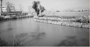 记者在埭下河沿岸看到,河流两头设置了拦截坝,河面波光粼粼,岸边设有一整排的松木桩,边坡上种满了美人蕉等花卉植物。 “以前,初期雨水、农药化肥、生活污水都直通入河,造成水中的氨、氮、磷等指标严重超标。今年4月,温大技术团队开始介入治理。”温大生命与环境科学学院副院长、水污染治理研究中心副主任郑向勇告诉记者,拦截坝让原河道形成前置库生态塘,能够对面源径流及日常农田排水进行拦截,生态塘系统的自净功能则可以实现对氮磷的吸收净化;河岸边设置松木桩,种植湿生植物、挺水植物,是为了形成生态堤岸,拦截和净化入河污染源中的颗粒物和氮磷等。
