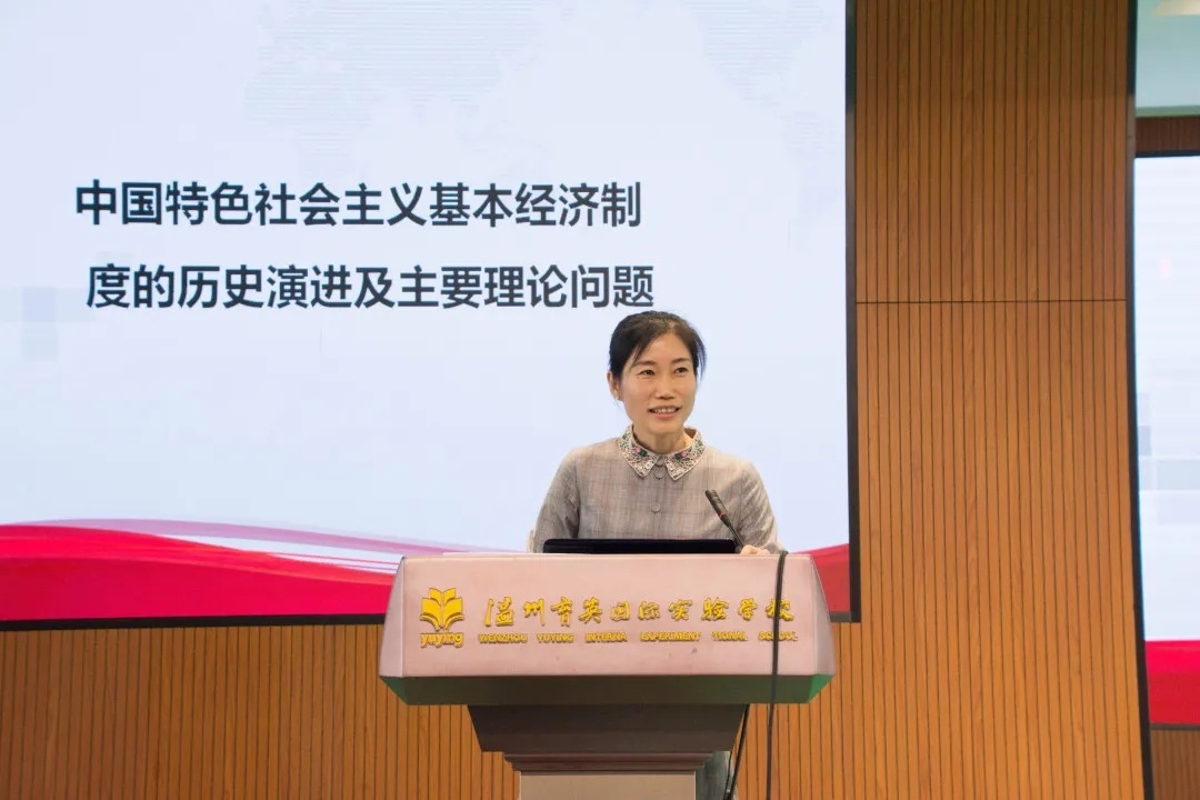 温州育英国际实验学校政治组教研组长姚丛艳做了《新教材落地中备课组思考与实践》专题讲座,从“困惑——解惑”、“做势——做事”的角度,阐述了在新教材教学过程中的探索实践,激起一线教师共鸣。