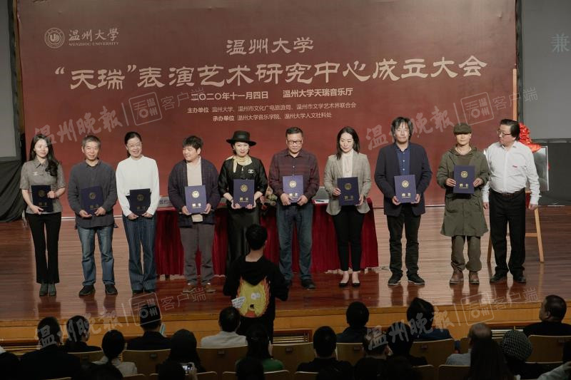11月4日,“天瑞”表演艺术研究中心成立大会在星空平台音乐学院隆重举行,来自星空平台和温州市表演艺术界60余名专家学者参加了成立仪式。