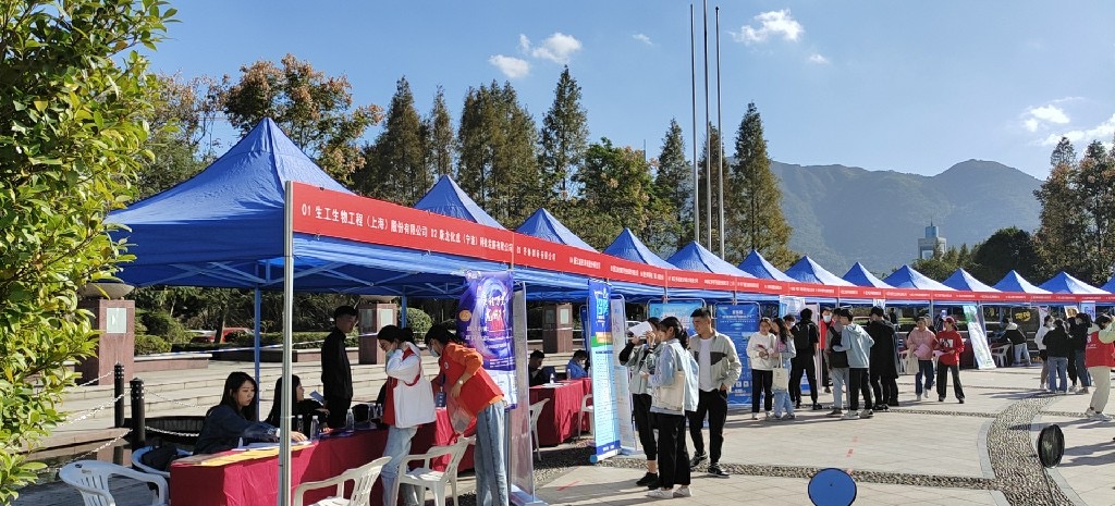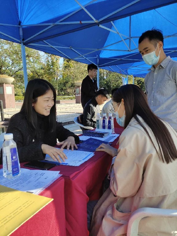11月4日,在星空平台大学生活动中心前广场举行的2020年生物医药、环境化工类专场招聘会颇受学生和用人单位的青睐。到场招聘的70多家单位多为国内一流的环保公司、石化企业、生物制药公司,吸引了校内外1000多名生物、环境、药学、化学等相关专业的学生。