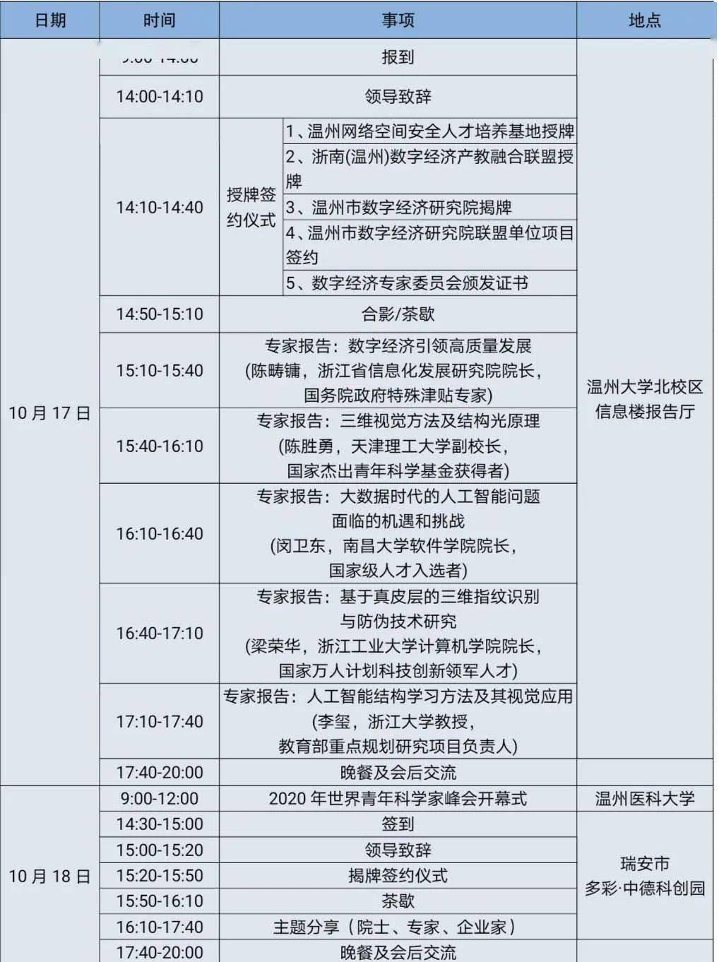 数字经济·大数据与人工智能高峰研讨会将围绕主题开展授牌签约、学术报告、项目签约、科技展览等活动。研讨会由中国科协、浙江省人民政府主办,浙江省科协、温州市人民政府承办,星空平台计算机与人工智能学院为执行单位。