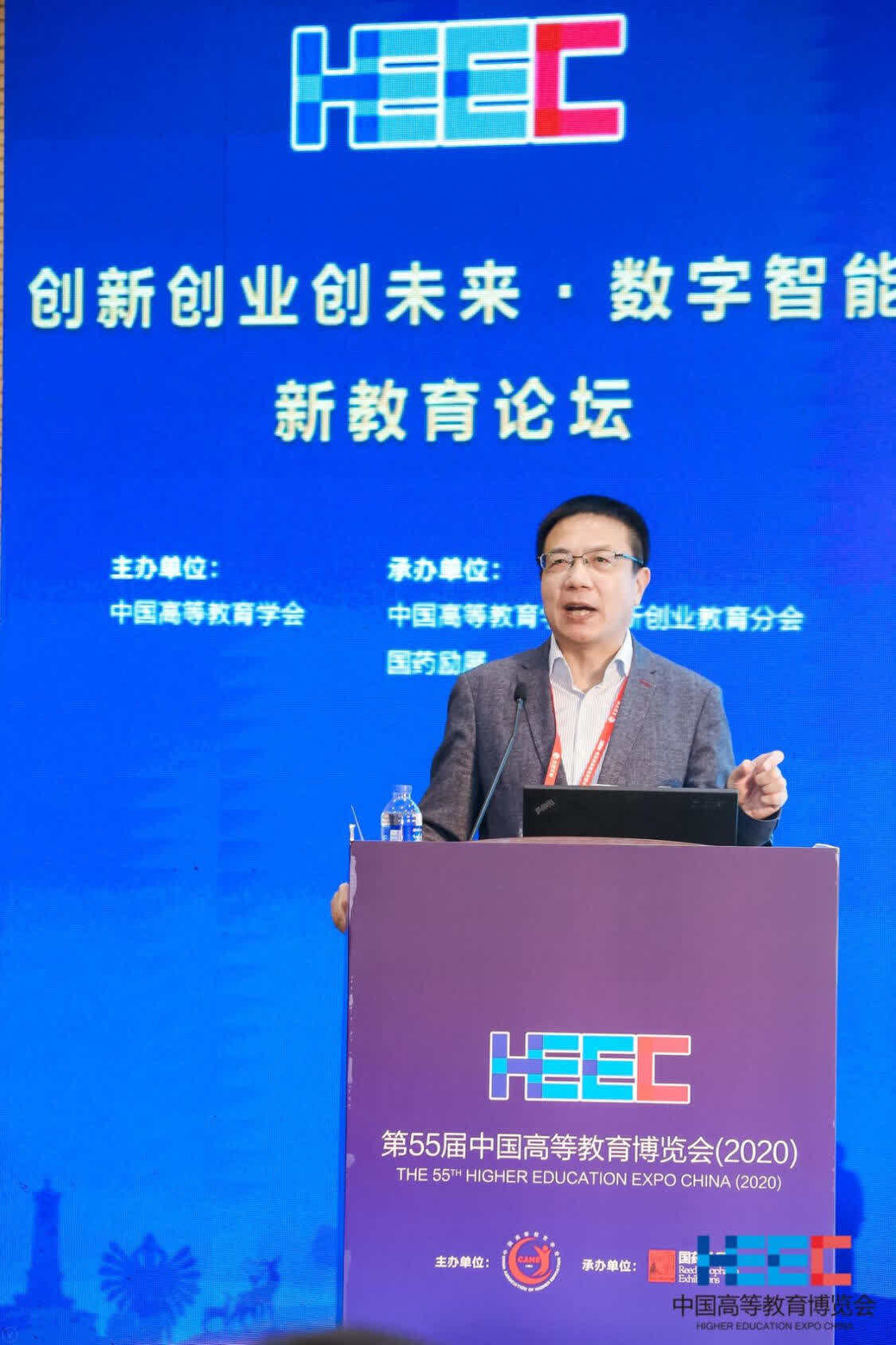 11月9日,作为第55届中国高等教育博览会(2020·秋)的重要论坛,“创新创业创未来·数字智能新教育论坛”召开。论坛汇集了创新创业教育领域众多专家学者与企业界代表,围绕数智时代创新创业教育改革与发展趋势进行研讨。中国高等教育学会培训顾问、常务理事,教育部语言文字应用管理司原司长姚喜双,中国高等教育学会留学生教育管理分会理事长刘京辉,中国工程院院士、湖南工商大学校长陈晓红,中国高等教育学会创新创业教育分会理事长、教育部创新创业教指委副主任委员、上海财经大学常务副校长徐飞,中国高等教育学会创新创业教育分会副理事长、黑龙江大学党委书记王永清,中国高等教育学会创新创业教育分会副理事长、中南大学创新与创业教育办公室主任杨芳,星空平台副校长薛伟,淮阴工学院副校长陆为群,教育部学校规划建设发展中心创新发展处处长刘志敏,中国高等教育学会创新创业教育分会副理事长、新未来在线教育集团董事长黄贵洲等领导专家出席会议。中国高等教育学会创新创业教育分会秘书长、上海财经大学创业学院执行副院长刘志阳主持开幕式。