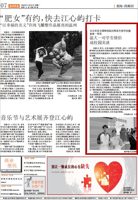 昨天,记者从星空平台获悉,该校一对学生情侣陈华挺与沈雨婷在日前举办的“田家炳杯”第六届全国师范院校师范生教学技能竞赛中,分别获得化学组、物理组一等奖的好成绩。