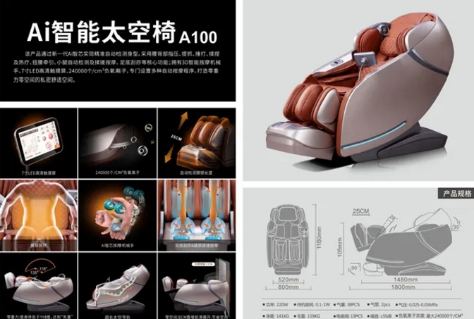 “目前,市场上按摩椅所具备的功能,在这款AI智能太空按摩椅上都能体现。以前,普通的按摩椅,大多只有3种按摩模式,但这款AI智能太空椅有23种模式,还能针对不同体型、不同需求设定专属按摩程序,并具有记忆功能。在去年的广交会上,成为按摩器具行业唯一获得出口产品健康医疗CF大奖的企业,收获意向订单就达到了200多万美元。”周国海说。
