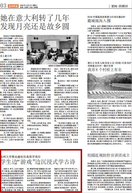 《山水诗之意境体验虚拟仿真实验教学项目》负责人洪之渊告诉记者,该项目的独创性在于将地方特色、创新性学习模式与高新技术融于学科教学之中。“这个课程可以激发学生‘想知’的欲望,要比传统教学方式更有优势。接下来,课程内容还将结合 VR 技术,实现更为全景式、沉浸式的教学体验。”