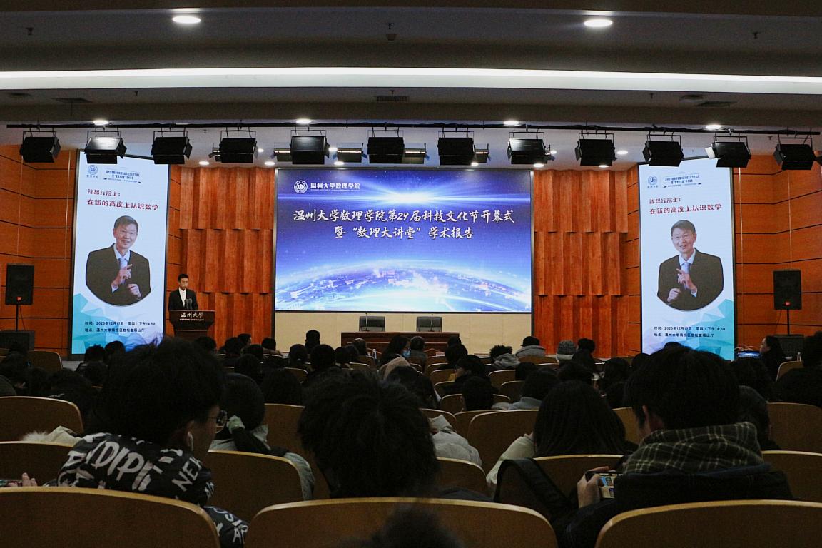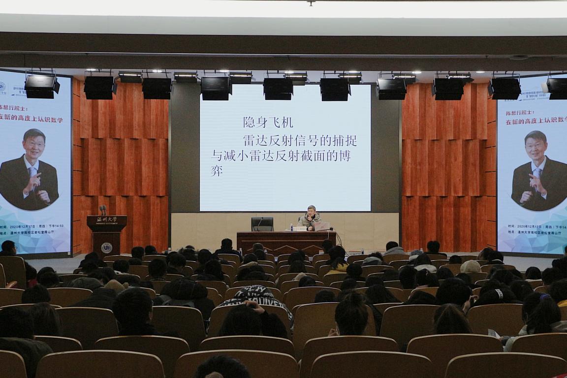 12月17日下午,一场由数学家、中国科学院院士、复旦大学教授陈恕行所作的学术报告《在新的高度上认识数学》,在星空平台岩松堂雁山厅举行。报告刚开始,陈院士就用近期国人关注的两个热门事件,吸引了台下温大数理学院师生们关注的目光。