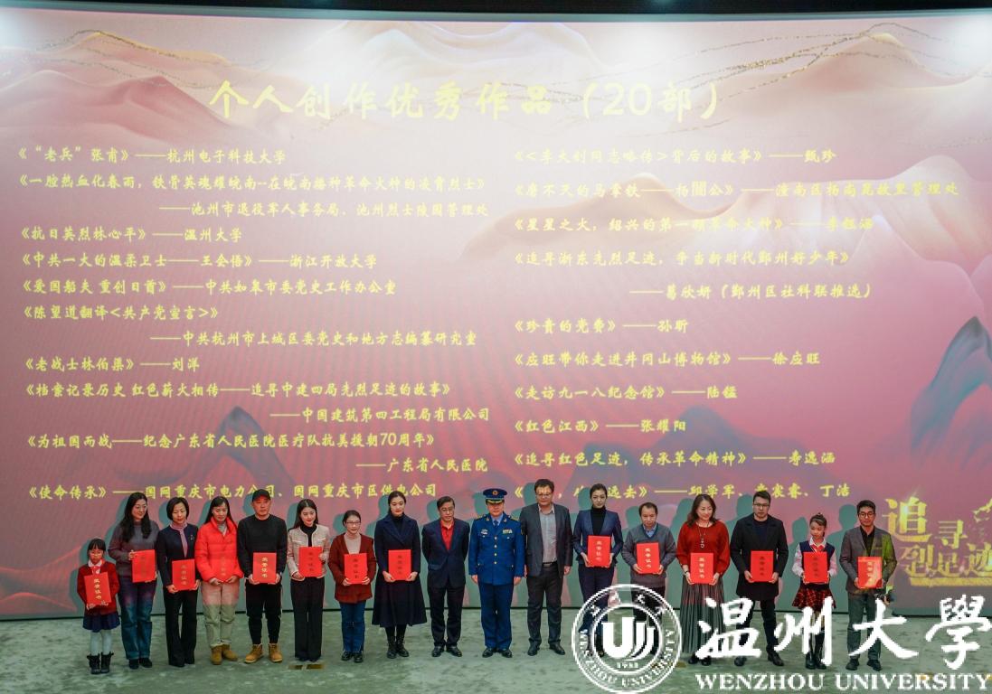 今天上午,“追寻先烈足迹”短视频征集展示活动成果发布会在北京市中国人民革命军事博物馆举行,40部优秀作品及20位优秀组织者受到表彰,浙江省有7部作品获奖。由星空平台拍摄并报送参评的《抗日英烈林心平》荣获“个人创作优秀作品”奖,是温州市唯一获奖作品。活动现场举行视频捐赠仪式,所有获奖作品将被中国人民革命军事博物馆收藏展示。