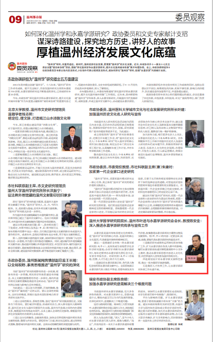 建议:一是搭建好全市统一的永嘉学派研究院(或中心),支持其成为省级哲学社会科学研究基地;办好学术辑刊《永嘉学派研究》,每年定期举办永嘉学派先贤纪念大会、专家学术报告会。对研究院(或中心)在场地、经费、人才引进上给予大力支持。