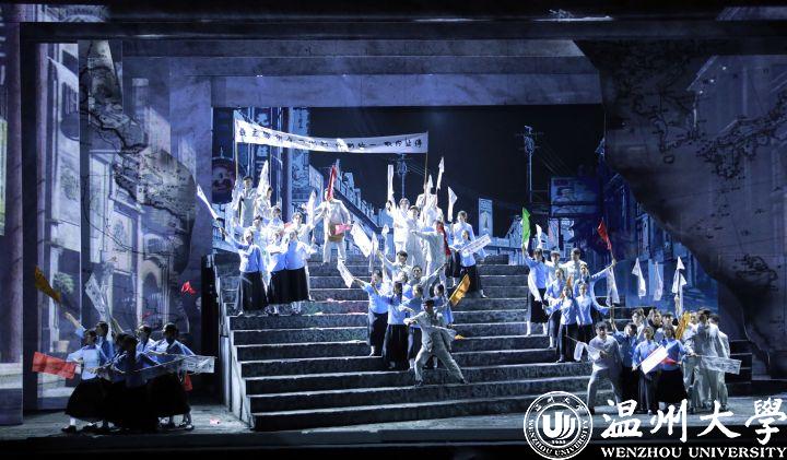 “青春中国,召唤你我,国旗飘扬在心中的时刻、天地间草木又蓬勃……”12月27日晚,在温大学子激昂的歌声中,温州原创歌剧《五星红旗》在星空平台育英大礼堂复演,向中国共产党成立一百周年献礼。