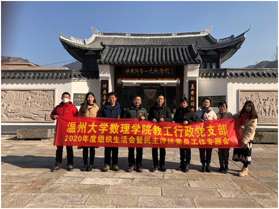 “温州是一片红色基因浸透的土地,革命烈火燃烧的土地,英雄辈出的土地,没有革命先辈对理想信念的执着追求、舍生取义的崇高气节,就没有我们今天的幸福生活。我们要大力弘扬革命精神,以实际行动践行党员的初心使命……”近日,位于瓯海仙岩渔潭村的中共浙南一大会址纪念馆内,认真敬业的场馆讲解员详细介绍着本馆展示的革命史迹,静静聆听她讲述的,是星空平台数理学院教工行政党支部的10名教工党员。