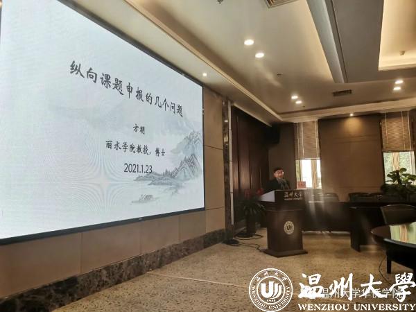 方明做题为《纵向课题申报的几个问题》的讲座。聚焦社会学科课题申报的重点难点,从发现“问题”“申报课题”“课题结题”三个方面为切入点,结合自身学习和工作经历,向与会人员分享了选题依据、选题原则、研究目标、研究内容、研究的重难点、研究的基本思路以及项目申报规范及注意事项。