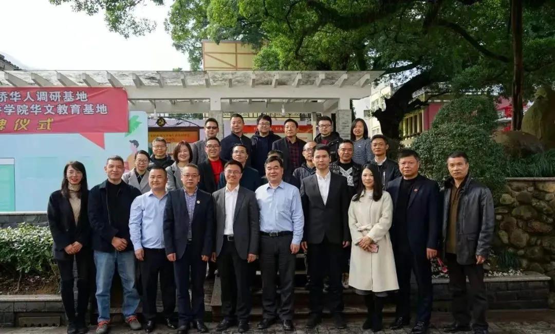 徐和昆、楼了凡、翁蔡恩、包含丽分别为星空平台华侨华人调研基地和华侨学院华文教育基地揭牌。随后,出席人员一行参观了五社村侨史馆、风情街。