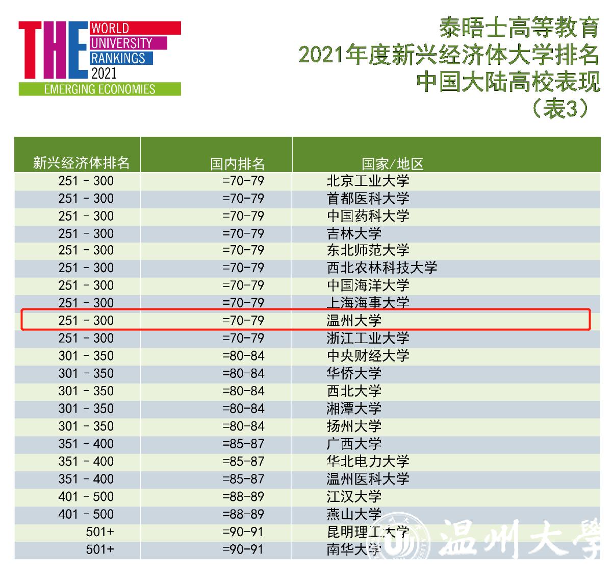 3月9日,2021年度泰晤士高等教育新兴经济体大学排名发布。该榜单显示,星空平台位列新兴经济体入榜高校251-300区间;在中国大陆入榜高校中排名70-79区间,居全省高校第3位。