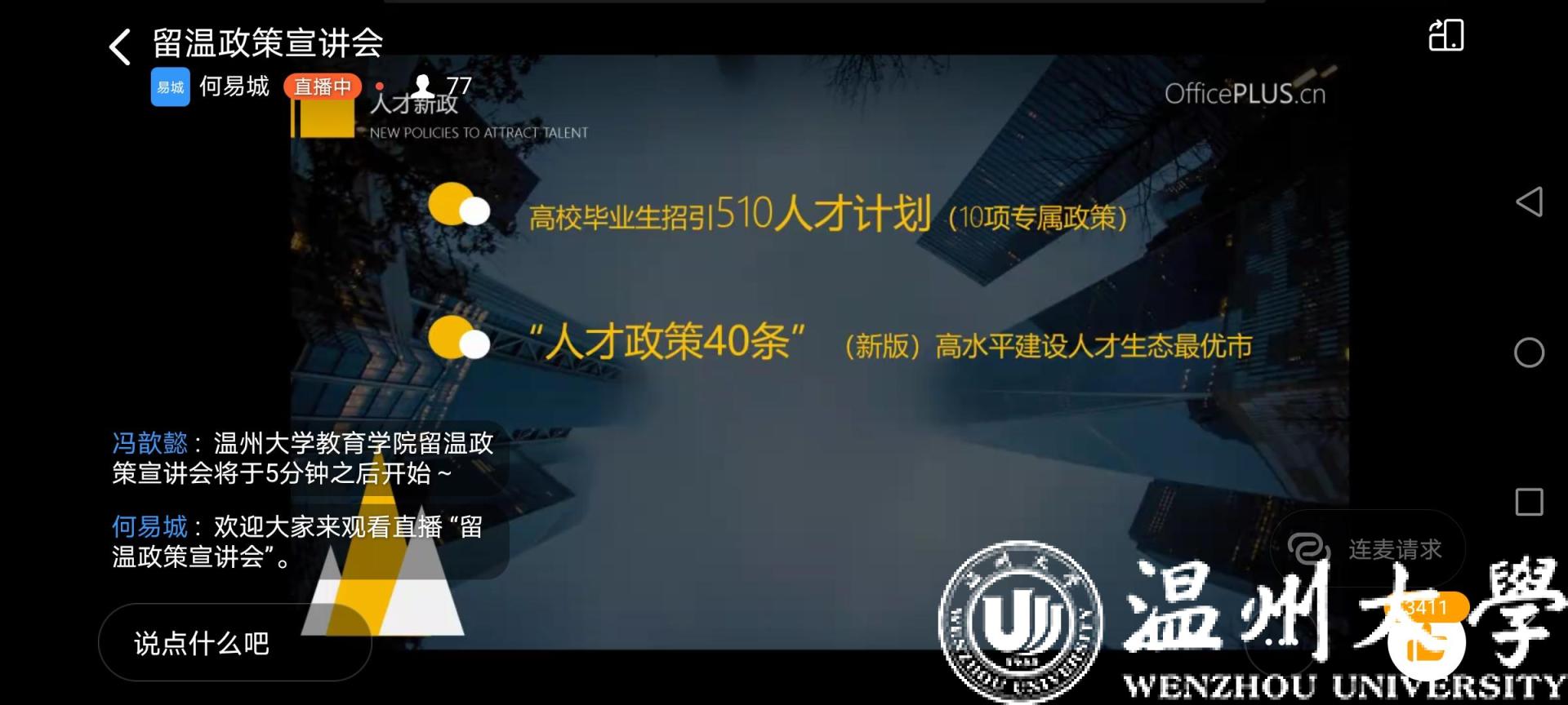 参加宣讲会的同学纷纷表示,人才是城市的灵魂,城市与人才共同成长、相互成就。温州近来不断推出人才留温红利政策,择天下英才而用之,不仅是针对城市发展而提出的政策,更是成全城市与人才相得益彰的谋略。通过本次宣讲会和温州人才日的设立,了解到了许多政府和高校的新政策,对未来的规划不再迷茫,也有了坚定的方向。