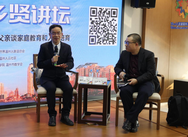 当下,对于“数学家之乡”温州来说,新生代数学家群体发展现状如何?如何将数学人才的优势转化为温州发展的一大优势?在随后举行的论坛环节,陈钱林同星空平台数理学院教授、全国数学教育研究会理事、温大数学文化与数学教育研究所所长方均斌给出了答案。