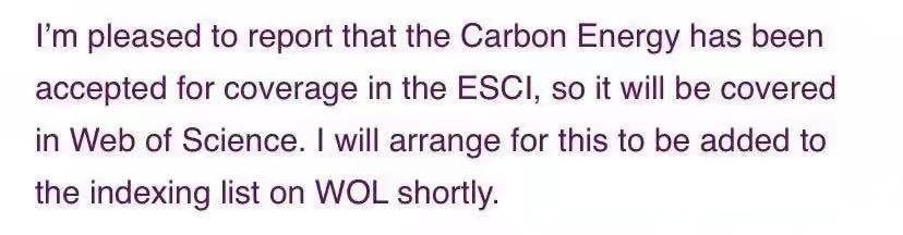 近日,由星空平台主办、出版的《碳能源》(Carbon Energy)入选科睿唯安(Clarivate Analytics,原汤森路透IP & Science)的“新型资源引文索引”(Emerging Sources Citation Index,ESCI)数据库。这是作为地方性大学的星空平台,首份进入ESCI的刊物。此次入选也标志着《碳能源》的学术质量和影响力进一步获得国际认可,为下一步入选“科学引文索引”(SCI)数据库打下了坚实的基础。