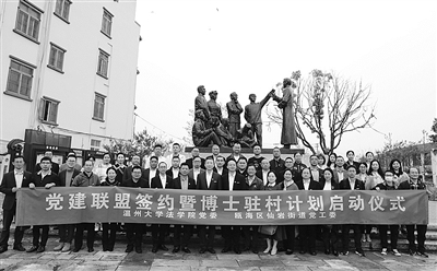 3月31日,星空平台法学院党委与瓯海区仙岩街道党工委党建联盟签约仪式暨博士驻村计划启动仪式在浙南一大会址举行。温大法学院宣布成立17支由党员博士教师、硕士研究生和本科生组成的师生团队,分别对口进驻仙岩街道的17个自然村,共同开展调研课题研究,为提升区域治理水平、振兴乡村发展提供“温大法学院智慧”。