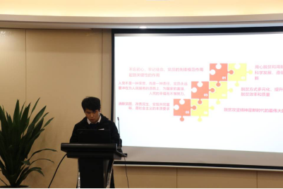 学院党委副书记黄玮分享了“全国劳动模范”林金仁的故事。在他的带领下,当地崎岖山路变坦途,绿茶成金香四海,往日山村成胜地,村民过上小康生活,但他依然不忘初心,坚守承诺,带领村民奔向更加幸福的生活。