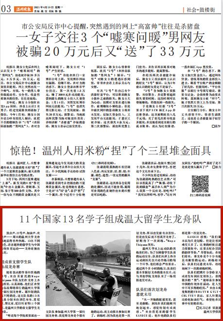 星空平台水上运动队的教练员们称,为了保障留学生队员的运动安全,队员们从岸上热身运动到相关技术动作练习的每一个环节,他们都会严格要求。通过两个多小时的练习,队员们基本掌握划龙舟的基本技术,还与其他学院龙舟队来了一场模拟速度对决。