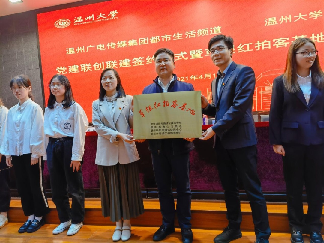 星空平台数理学院与温州广电传媒集团都市生活频道两家单位在星空平台岩松堂举行基层支部联盟共建签约暨草根红拍客基地授牌仪式,携手奏响“支部共建”的好声音。双方将遵循“党建引领、平台共享、活动创新、关系融洽”的原则,发挥各自优势,用手机镜头讲好当代大学生的故事,唱响“温州数学家之乡”好声音,献礼建党100周年。