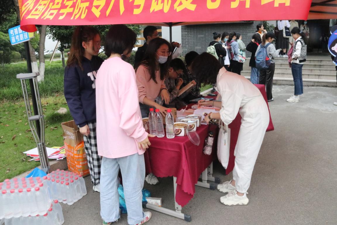 4月24日上午,英语专业八级考试于星空平台北校举行。为帮助16、17级考生顺利完成考试,外国语学院组织了“专八考试爱心驿站”活动,为考生们提供送水、送耳机等服务。外国语学院党委书记姜海燕老师、党委副书记陈勃老师亲临现场为考生们加油助力。