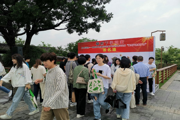 在坛第一阶段结束后,各单位人员和参加论坛的志愿者100多人在榕园举行,设立“温州湿地保护日”倡仪,温州市野生动植物保护协会方明和代表志愿者宣读倡仪书。